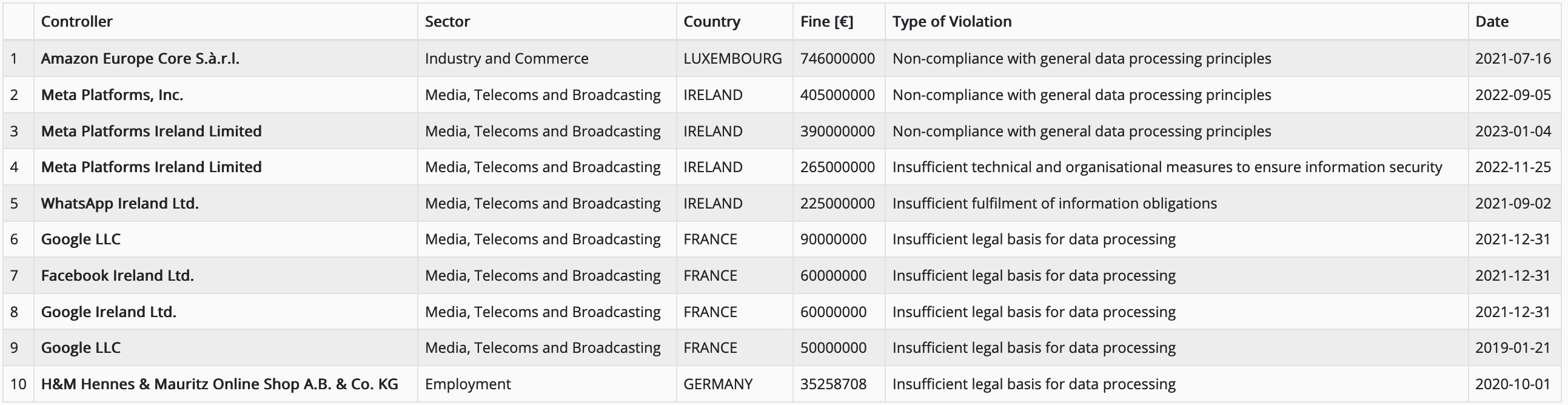 Gehen wir die bisher größten Geldbußen der DSGVO durch.