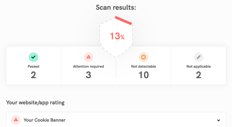 In nur wenigen Sekunden erhalten Sie einen Bericht mit Handlungsempfehlungen, wie Sie Ihre Website gesetzeskonform machen können.
