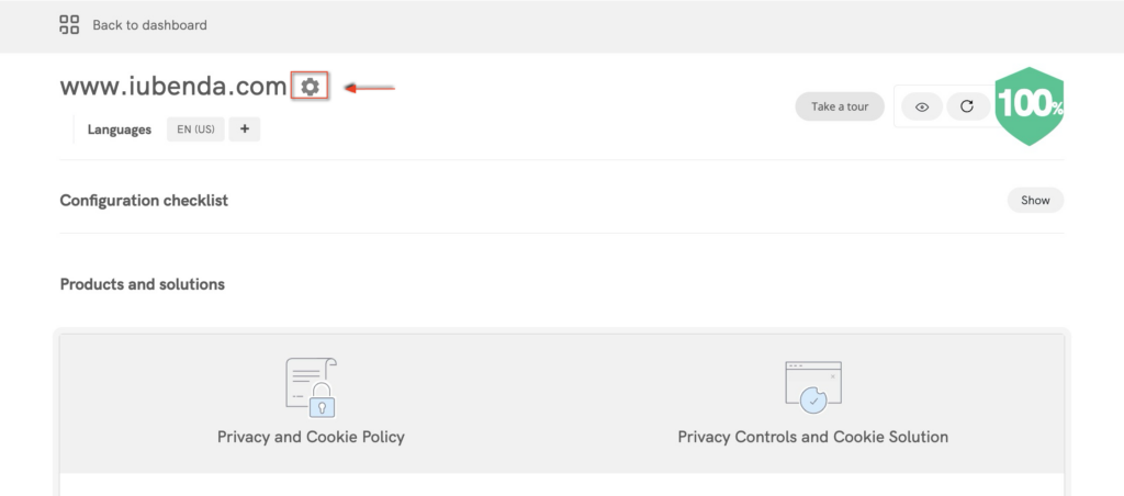 - Wenn Sie noch nicht eingeloggt sind, melden Sie sich unter iubenda.com an;