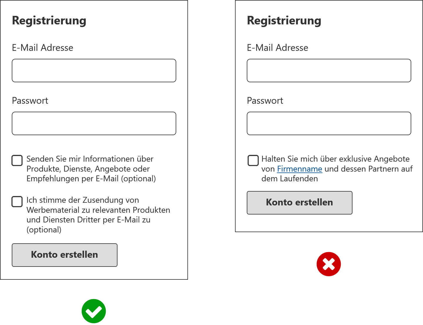 Klar angeben, für welche Art von E-Mail der Nutzer seine Einwilligung abgeben wird;