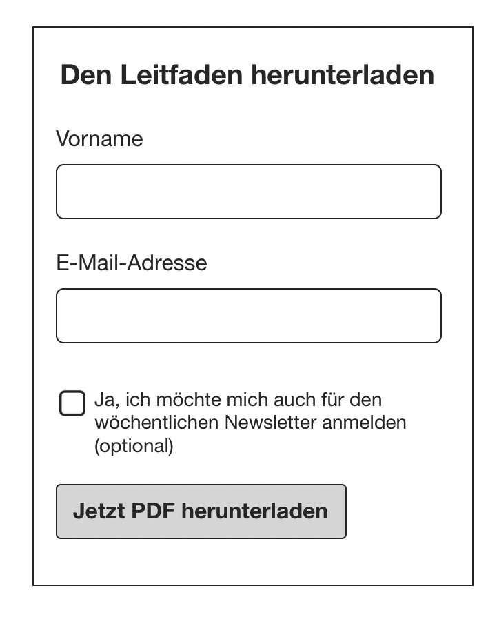 Wenn Sie also in der Praxis z. B. auch Personen, die Ihr E-Book herunterladen, in Ihre Newsletter-Liste aufnehmen möchten, sollten Sie unter dem Formular zum Herunterladen von E-Books etwas Ähnliches wie folgt angeben: