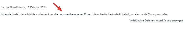 Das Ergebnis ist ein einwandfreies Dokument zur Datenschutzerklärung ohne ein überflüssiges iubenda-Branding (siehe Pfeile).