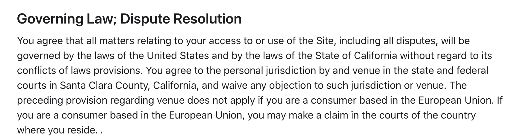 Let’s take a look at how the choice of law clause is used in different documents and Terms of Use.