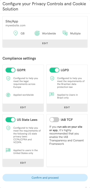 - Intuitive Interface: Our interface makes configuring your Privacy Controls and Cookie Solution straightforward and user-friendly.