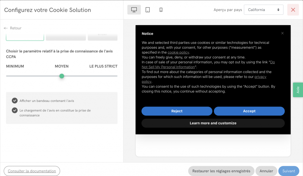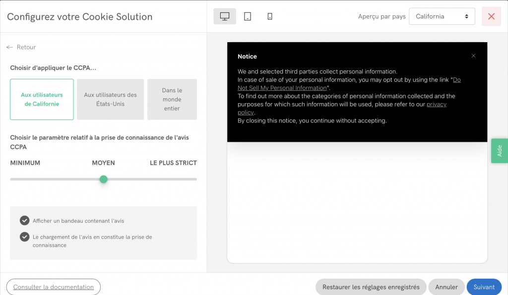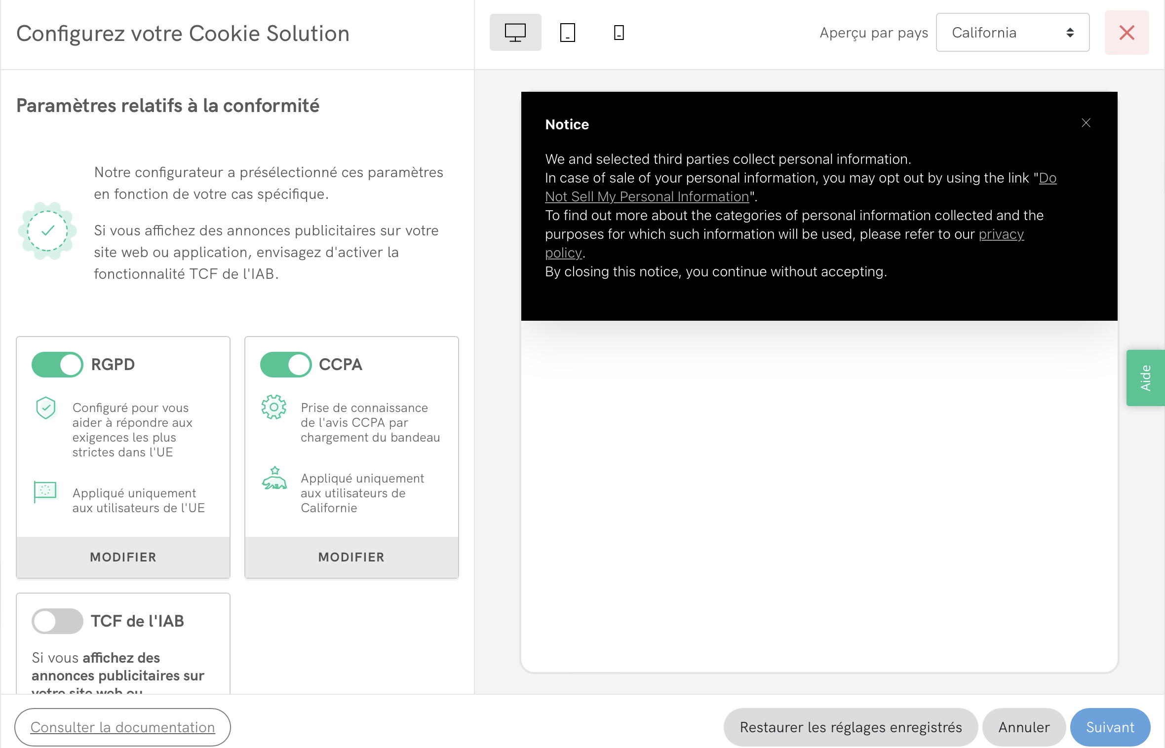 - d’assurer la compatibilité avec le CCPA Compliance Framework de l’IAB.