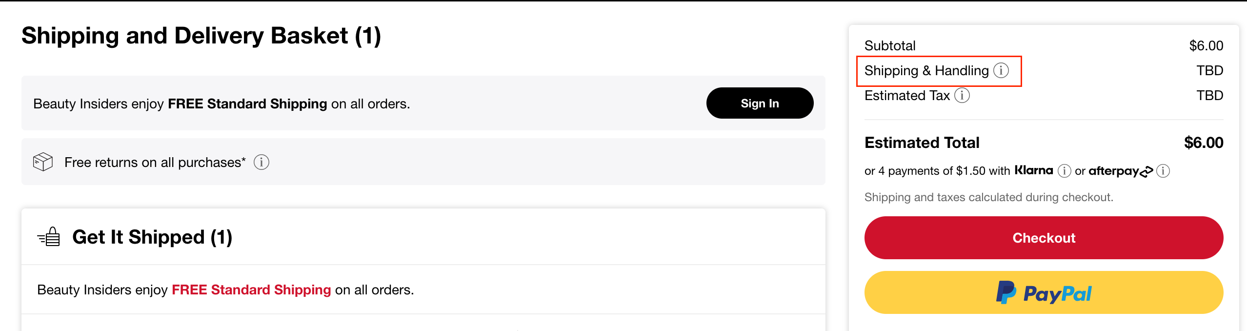 Another place you can add your shipping policy is at checkout, so your customers can see it before they buy. Here’s a sample of the shipping policy added at checkout, from Sephora’s website.