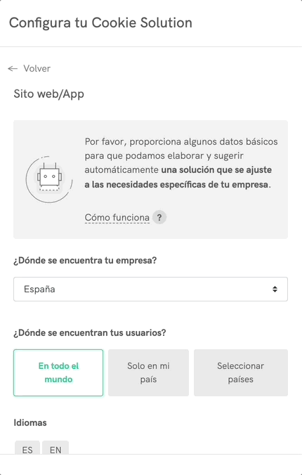 ¡Bienvenido a nuestro configurador de la Privacy Controls and Cookie Solution!