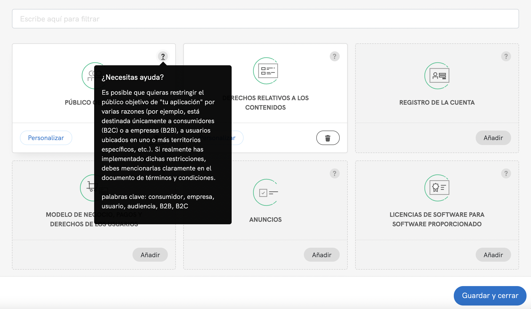 - Añadir tu documento de términos y conditions a tu sitio web o app