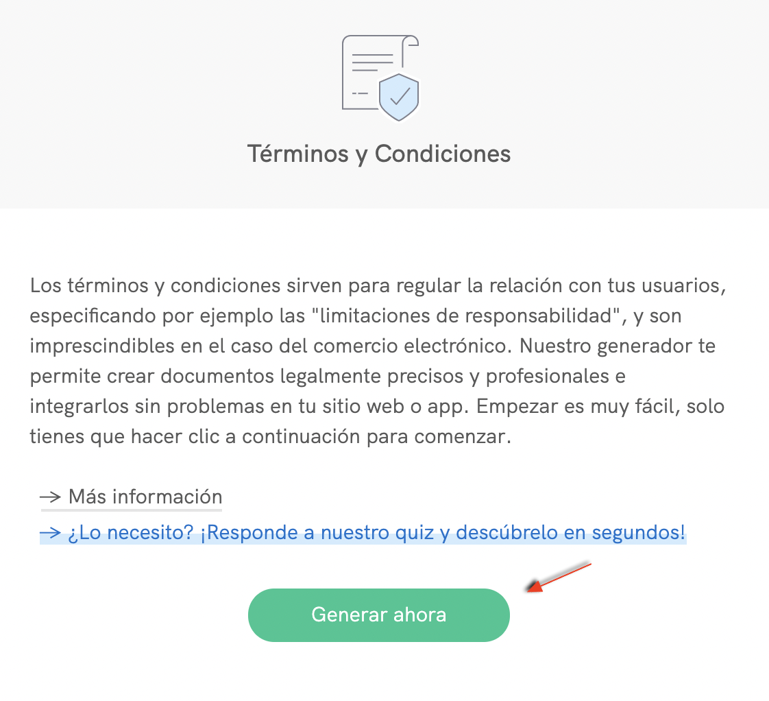 Una vez que hayas entrado en tu dashboard, puedes empezar a generar tu documento de términos y condiciones.