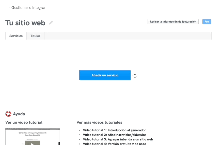 Tu política de privacidad debe adaptarse a las actividades de recopilación de datos de tu web o app. Para ello, tienes que añadirle servicios.