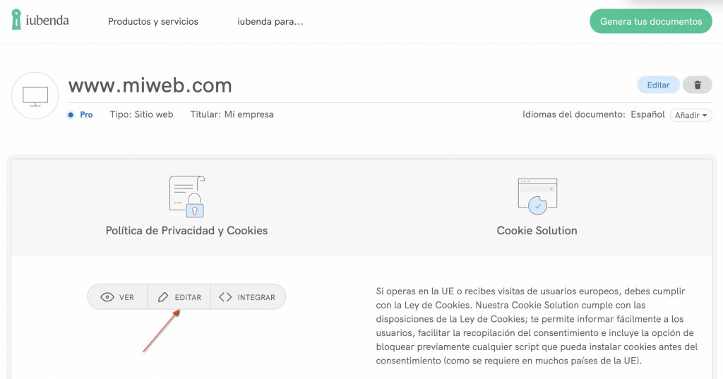 Cuando la política de privacidad esté lista tendrás que añadirla a tu web. Esto se hace utilizando el código de integración que proporcionamos.