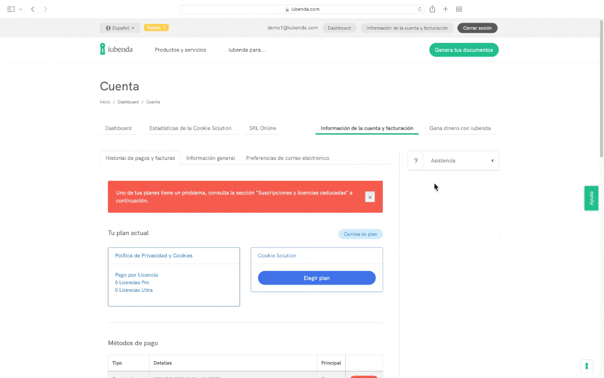 Dónde encontrar los planes de iubenda caducados