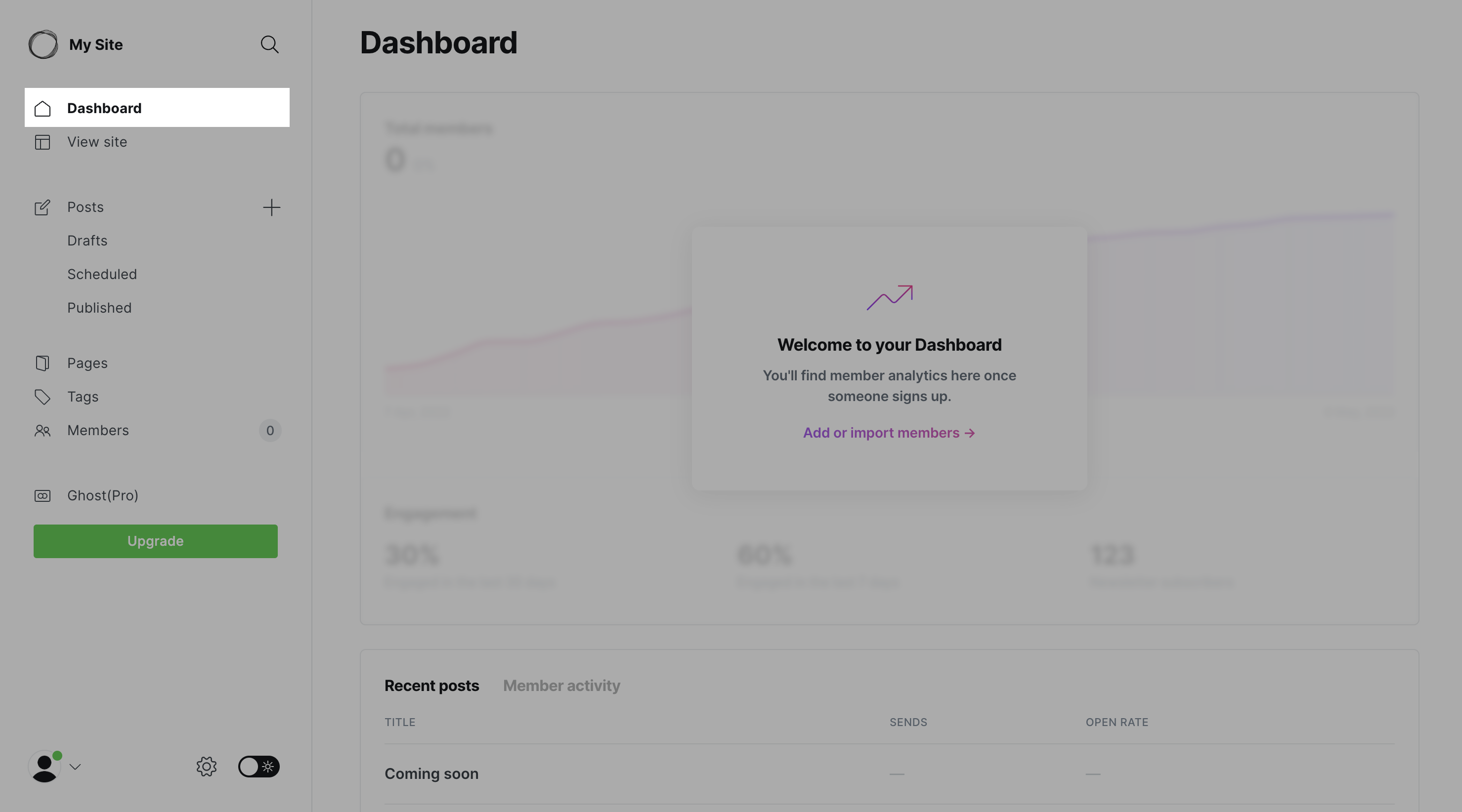 Ahora, dirígete a tu cuenta de Ghost y, en la parte inferior izquierda, haz clic en el ícono de configuración.
