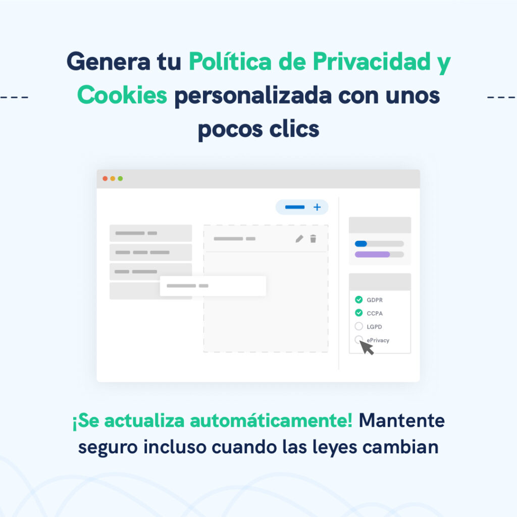 ¡Gran elección! El Generador de Políticas de Privacidad es nuestro producto estrella. Las políticas de privacidad se requieren en casi todo el mundo y son cruciales para cumplir el RGPD, la CCPA, la LGPD y otras normativas.