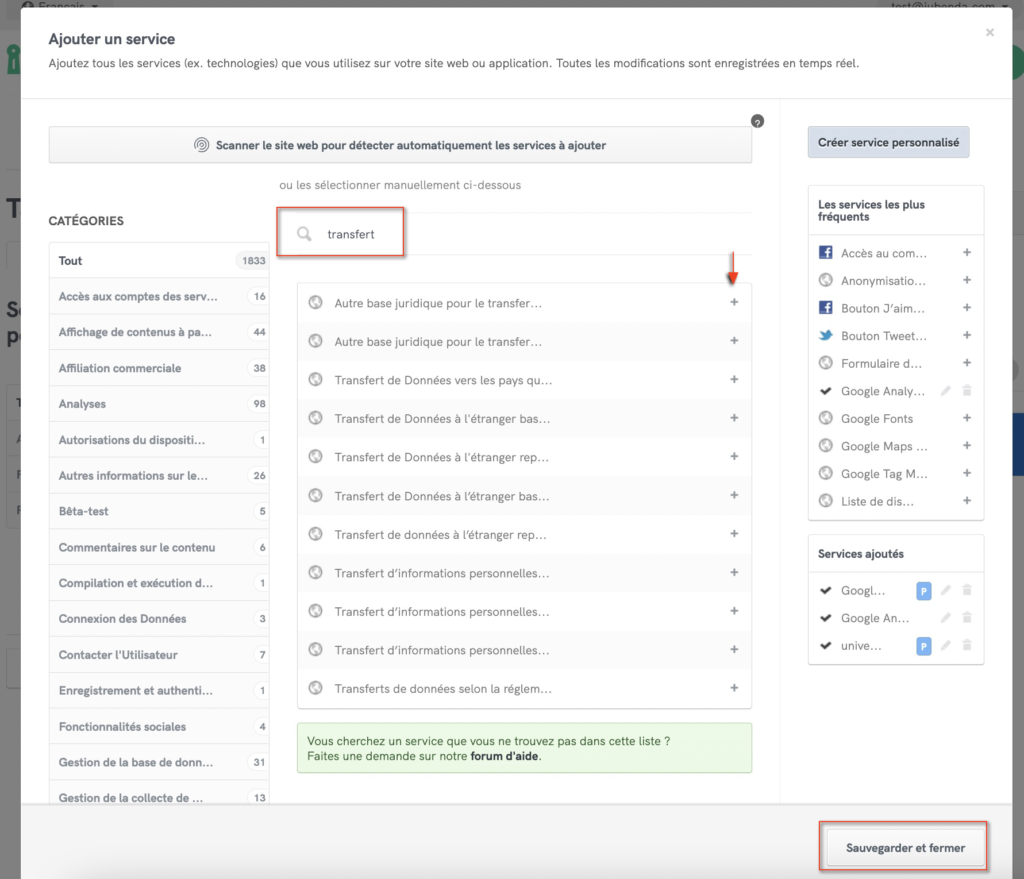 💡 Afin de déclarer les transferts de données comme il se doit, vous devez inclure une clause qui contient des informations relatives aux risques qui sont impliqués. Cette clause se trouve dans votre tableau de bord iubenda.