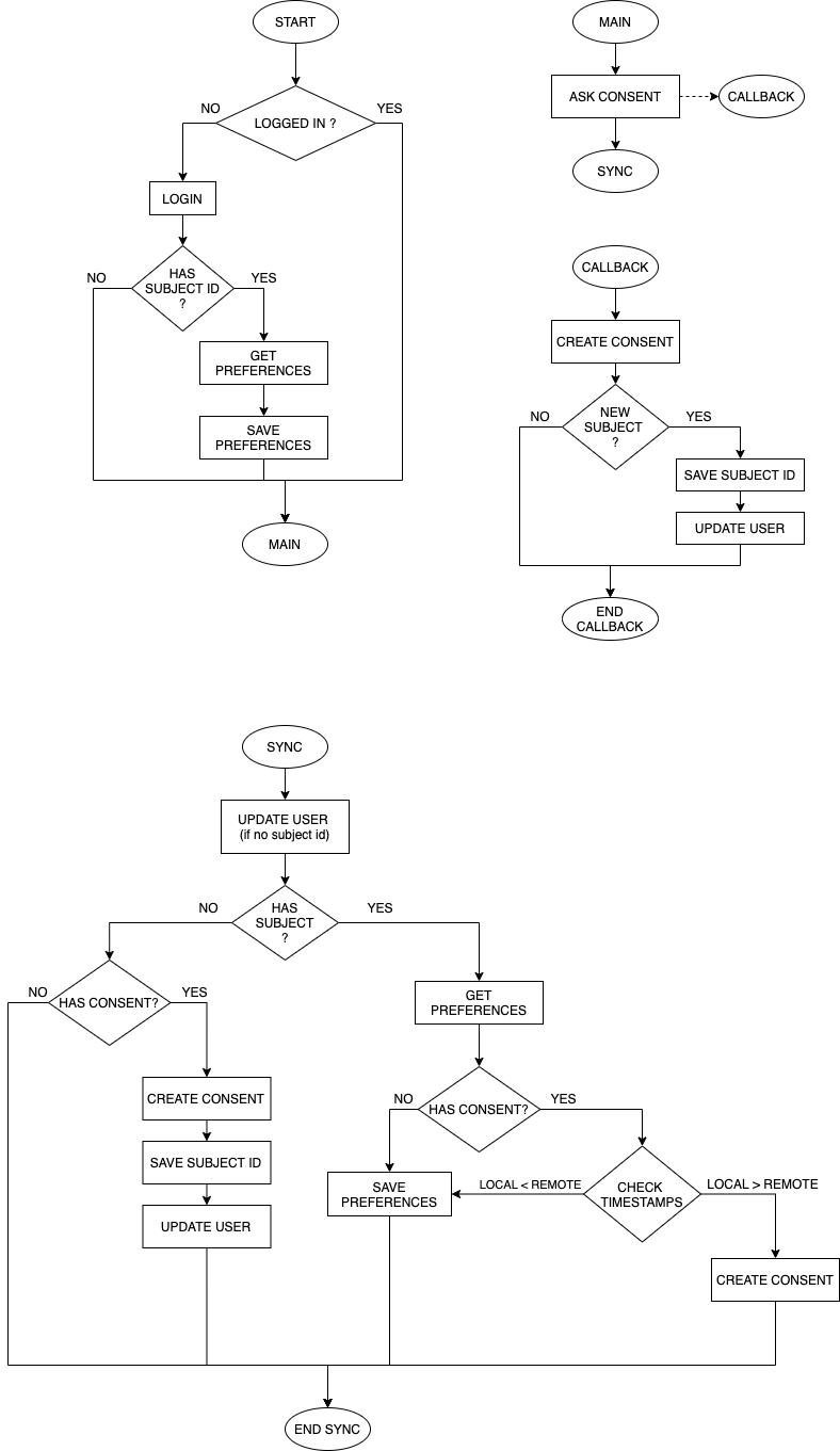 Also, at each startup, synchronize the preferences between the app and the Consent Database as described in the paragraph below.
