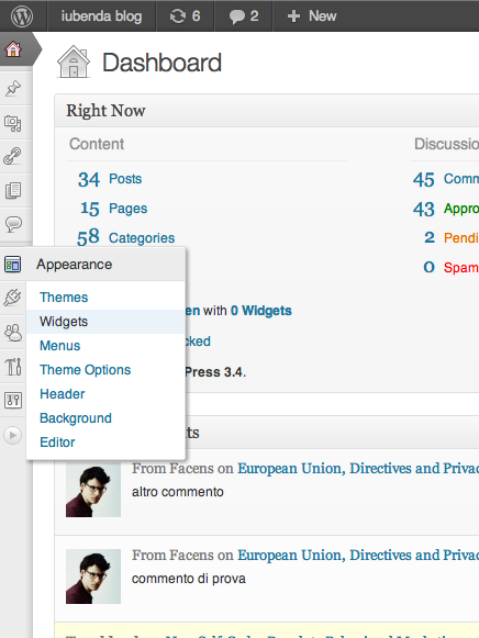 Depending on your chosen theme, you will encounter different sections on the right of the screen, referring to the Sidebar or to the Footer. Each of the boxes on the right allows you to insert content in the respective sections of your WordPress website. You must therefore choose which of these sections you want to place the privacy policy link into. The most common choice is the Footer, although placing it in the Sidebar is also a possibility. In any case, you can modify this preference at any time.