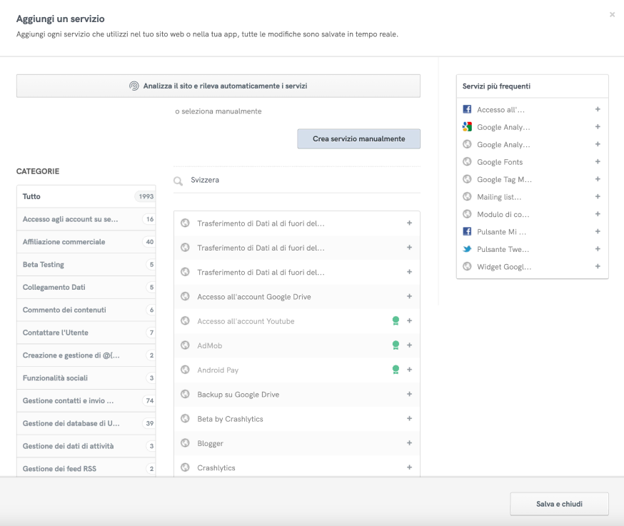 💡 Abbiamo aggiunto un site scanner all’interno della finestra del servizio del generatore, così potrai scansionare rapidamente il tuo sito in tempo reale per identificare quali servizi vanno aggiunti alla tua policy.