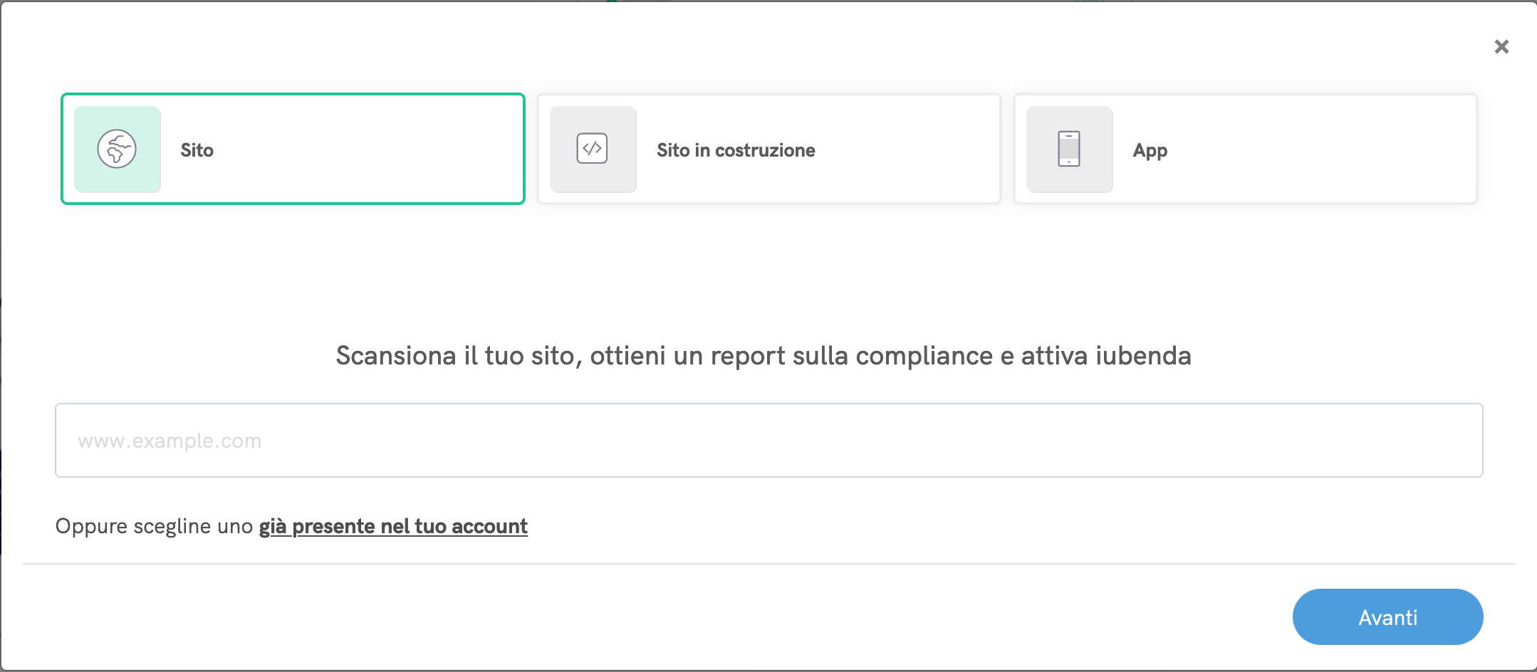 1. Crea un account iubenda e scansiona il tuo sito