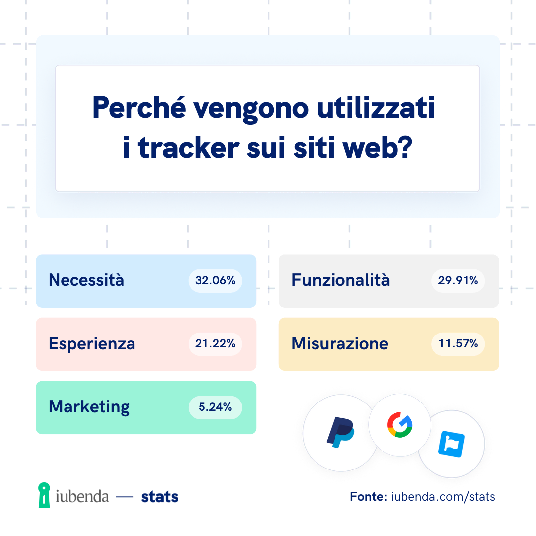Con una media di 3 tracker per sito, potresti essere uno di loro. Ciò significa che dovrai comunicare queste informazioni agli utenti per rispettare i requisiti legali e mantenere la loro fiducia.