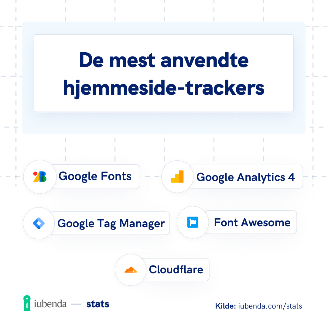 💡 Den gennemsnitlige hjemmeside bruger tre trackers fra bannerteksten.Er din hjemmeside én af dem? Hvis det er tilfældet, skal du oplyse dine brugere om det i overensstemmelse med international privatlivslovgivning. Overholdelse af regler er afgørende for at beskytte brugernes tillid og undgå bøder.