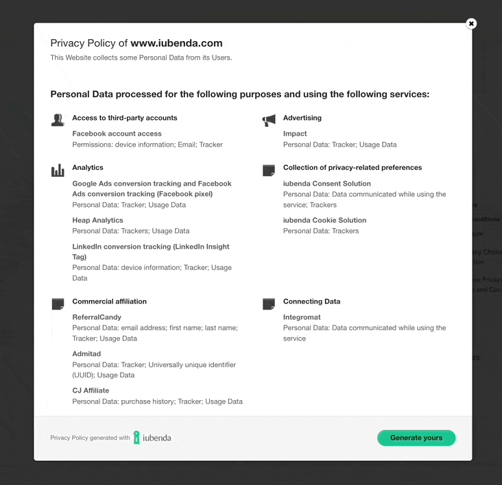 - iubenda ist jetzt einer der wenigen Anbieter, deren Lösungen mit GPP und GPC kompatibel sind, und macht es Ihnen damit einfacher, Opt-out-Anfragen zu entsprechen, ohne Skripte zu taggen.