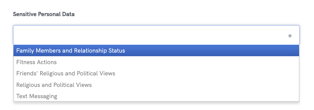 Hier können Sie dann für den betreffenden Dienst eine oder mehrere der nachstehend aufgeführten Arten sensibler personenbezogener Daten auswählen: