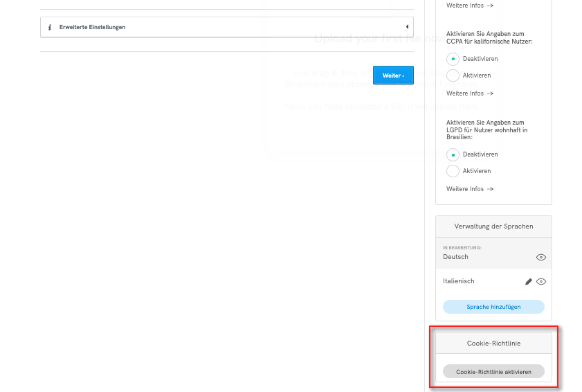 Wenn Sie die Option “Benutzerdefiniert” wählen, wird dieser Dienst von den von iubenda bereitgestellten Trackern ausgeschlossen. Dies bedeutet, dass nur die manuell eingegebenen Daten in der generierten Cookie-Richtlinie angezeigt werden.