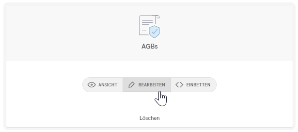 Um ein Dokument zu bearbeiten, öffnen Sie Ihr Dashboard und wählen Sie die Website oder App, die Sie bearbeiten möchten, durch Anklicken oder durch Klicken auf den Button Verwalten, aus. Klicken Sie dann auf den Button Bearbeiten im AGB-Bereich.