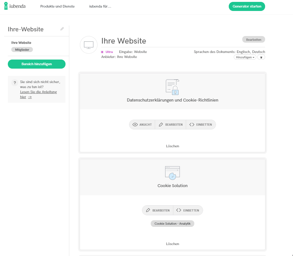 Diese Bearbeitung kann jederzeit von Ihrem iubenda-Konto aus vorgenommen werden: