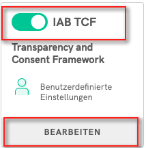1) Klicken Sie im IAB TCF-Bereich des iubenda Privacy Controls and Cookie Solution Konfigurators auf “Bearbeiten”