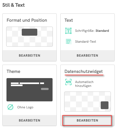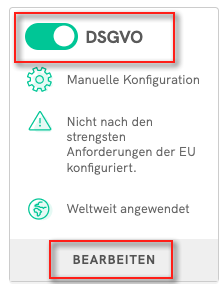1) Wählen Sie im iubenda Privacy Controls and Cookie Solution Konfigurator den Bereich zur DSGVO-Compliance und klicken Sie auf “Bearbeiten”