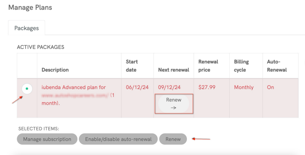 - You’ll see your subscription(s). Select the one that you want to renew;