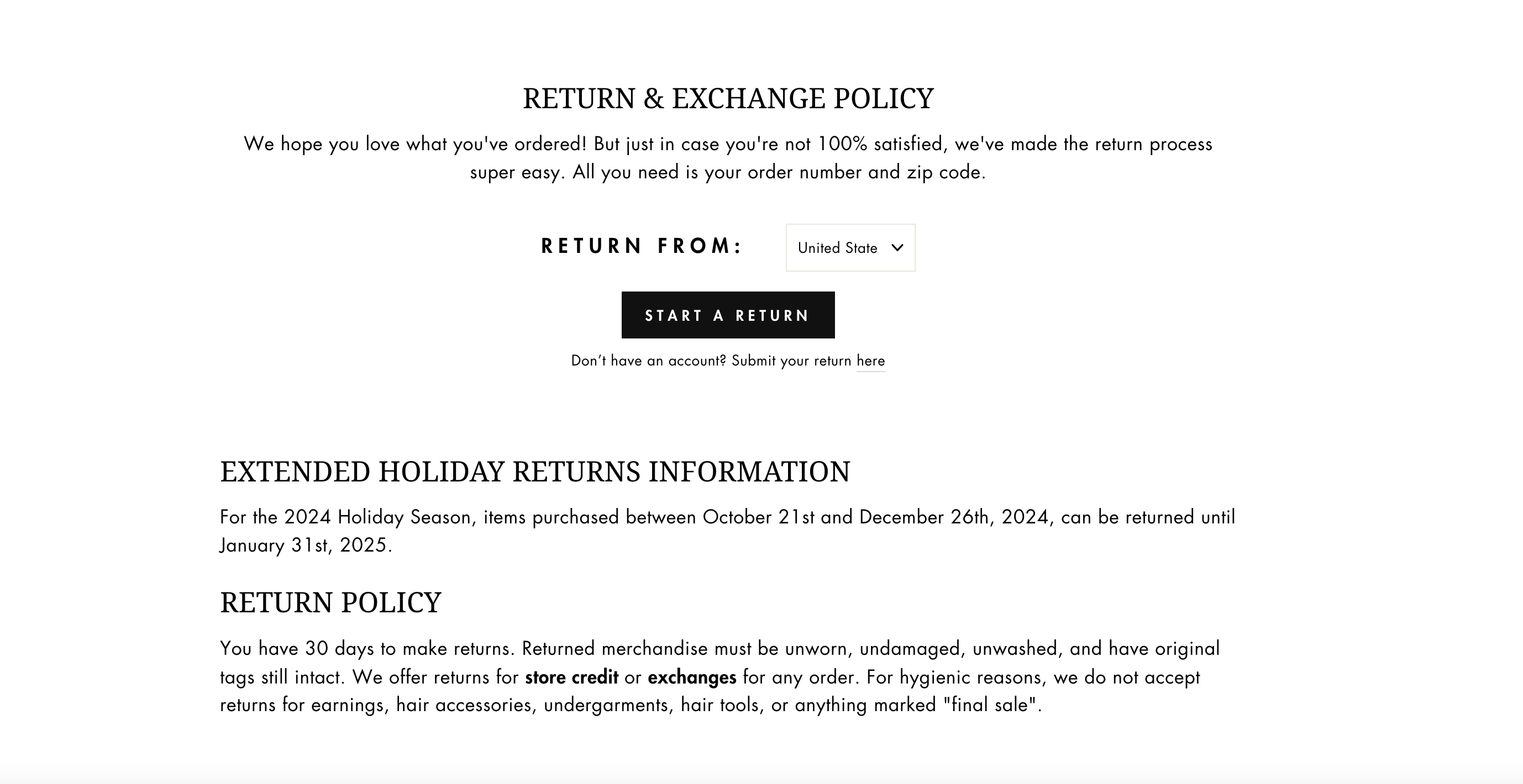 In the US, not having a clear return policy can result in legal complications and damage your brand reputation.