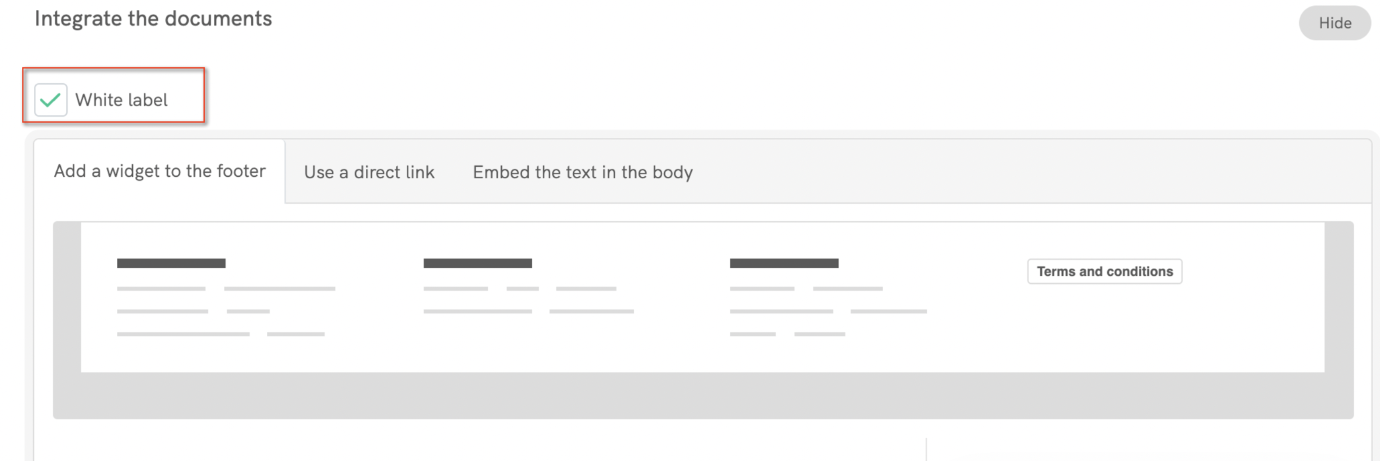 - Directly embed the Terms and Conditions into a page on your website