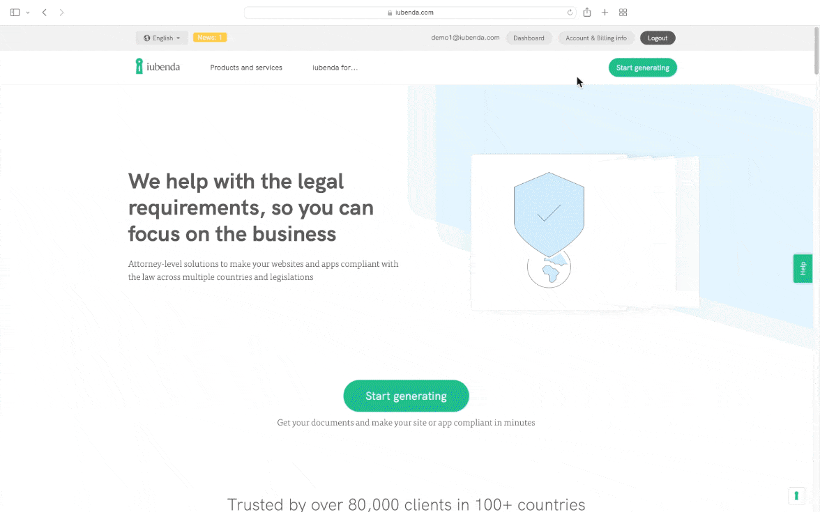 - Then, click on the “Account & Billing info” button on the of the page to access your iubenda account page