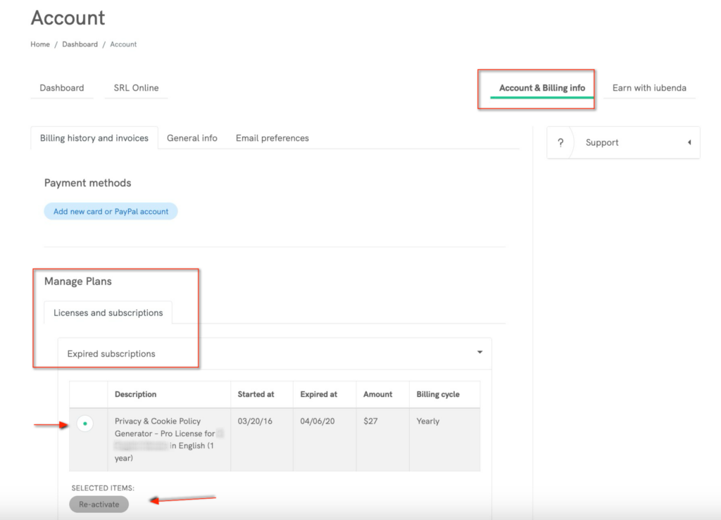 - Next, click on the subscription you would like to reactivate by selecting it and click on the “Re-activate” button
