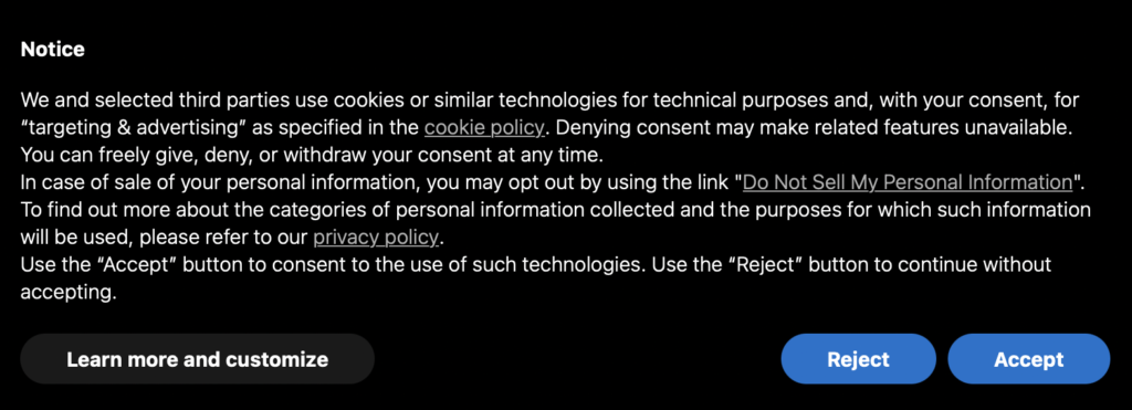 noyb (None of Your Business) is a non-profit organization started by Austrian privacy activist, lawyer, and author, Max Schrems in 2017. Among other initiatives, noyb aims, as stated on their website, to end “cookie banner terror” in the EU by ensuring that users are given clear options about their cookie consent and preference choices and eliminate “dark patterns.”