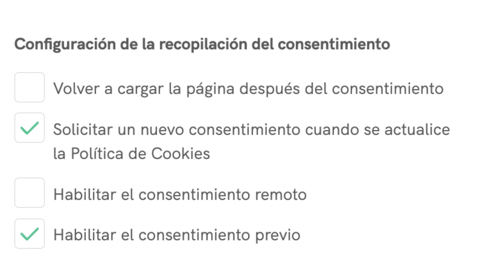 Para ayudarte con este requisito, te brindamos la posibilidad de actualizar fácilmente la recopilación del consentimiento cada vez que se actualice la política de cookies.