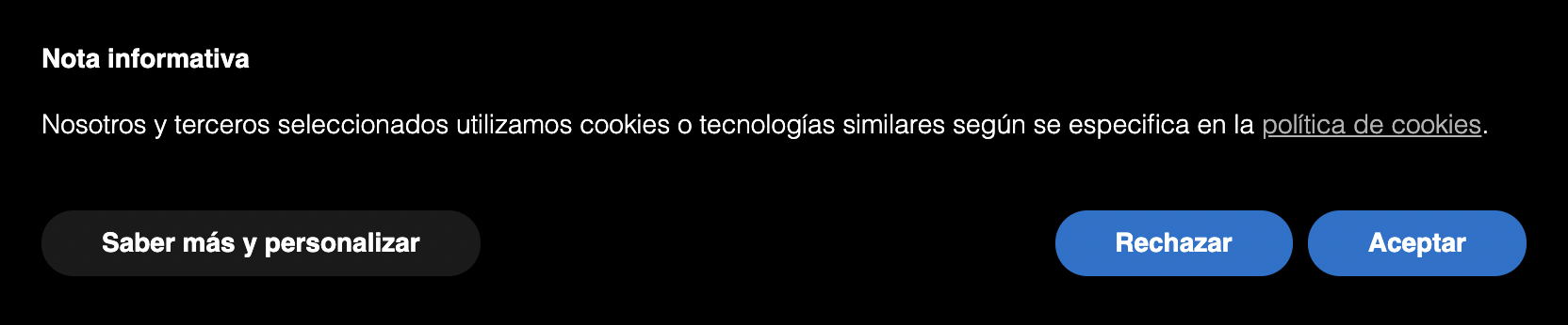 Ejemplo de banner de cookies