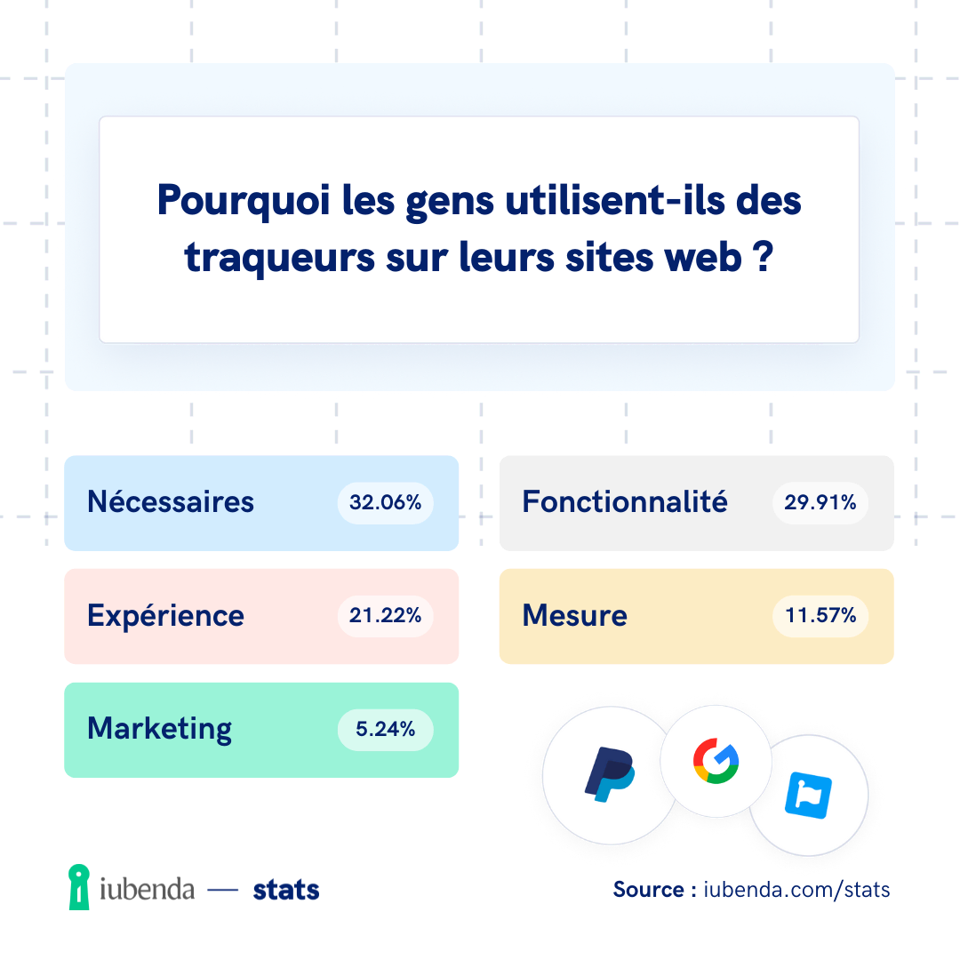 Avec une moyenne de trois traqueurs par site, vous êtes peut-être l’un d’entre eux. Cela signifie que vous devrez divulguer ces informations aux utilisateurs pour répondre aux exigences légales et maintenir la confiance des utilisateurs.