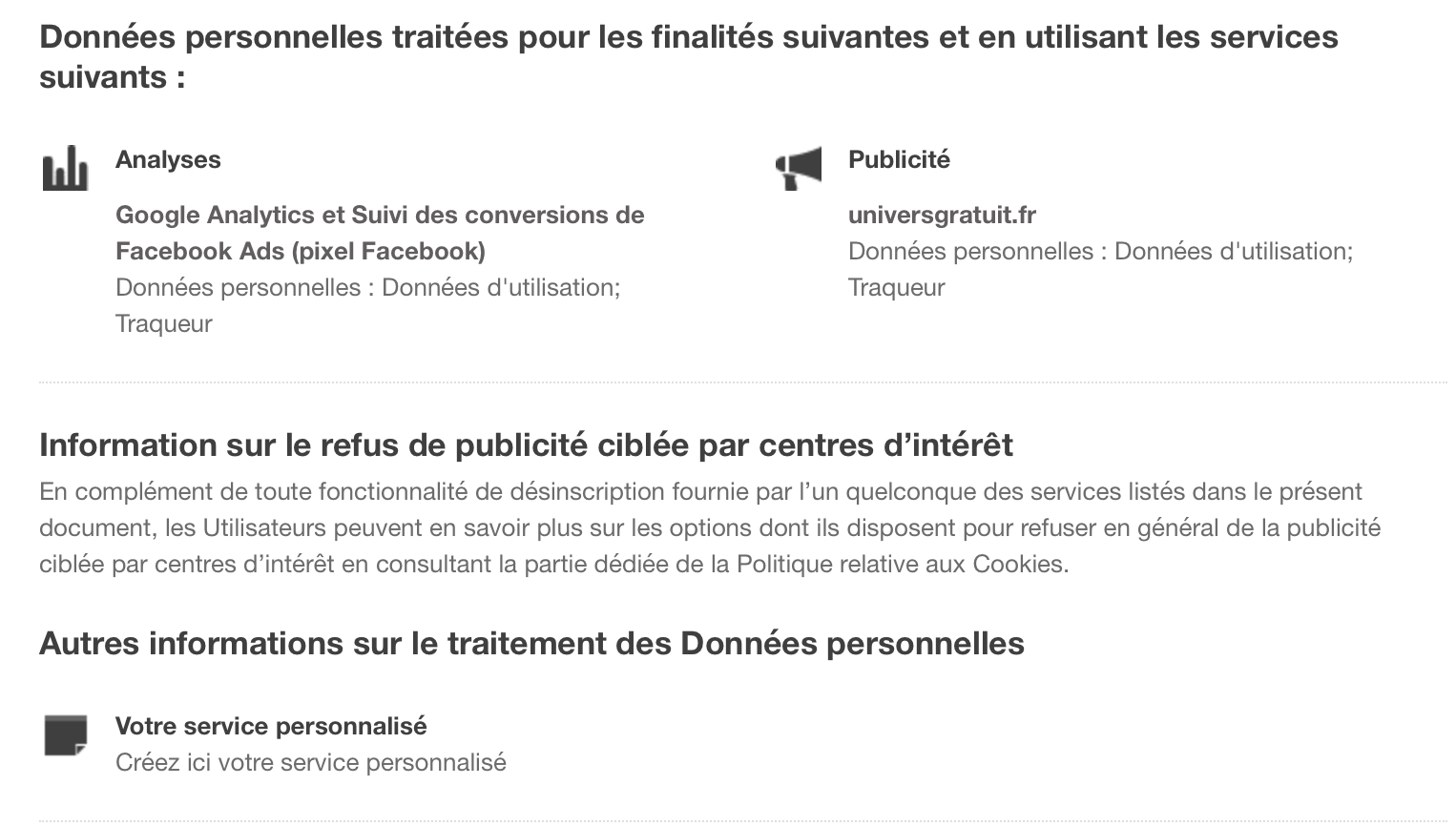 - Ajouter un “service personnalisé” à votre politique de confidentialité