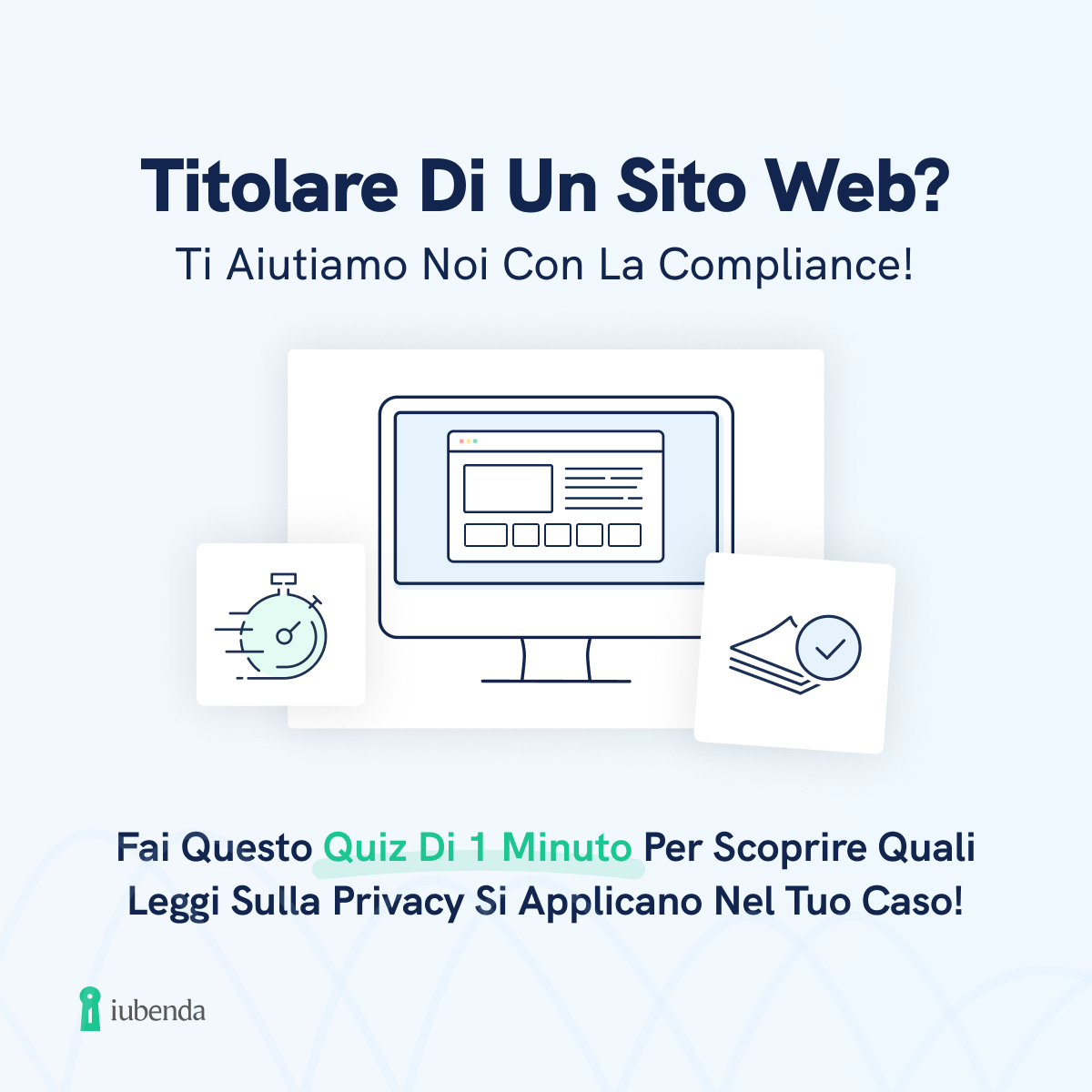 iubenda mi ha aiutato con l’adeguamento del mio sito! Con il quiz 👉 https://iubenda.link/quiz-it scopri i requisiti legali, cosa fare e come iubenda può aiutarti.