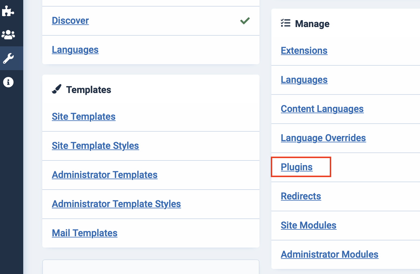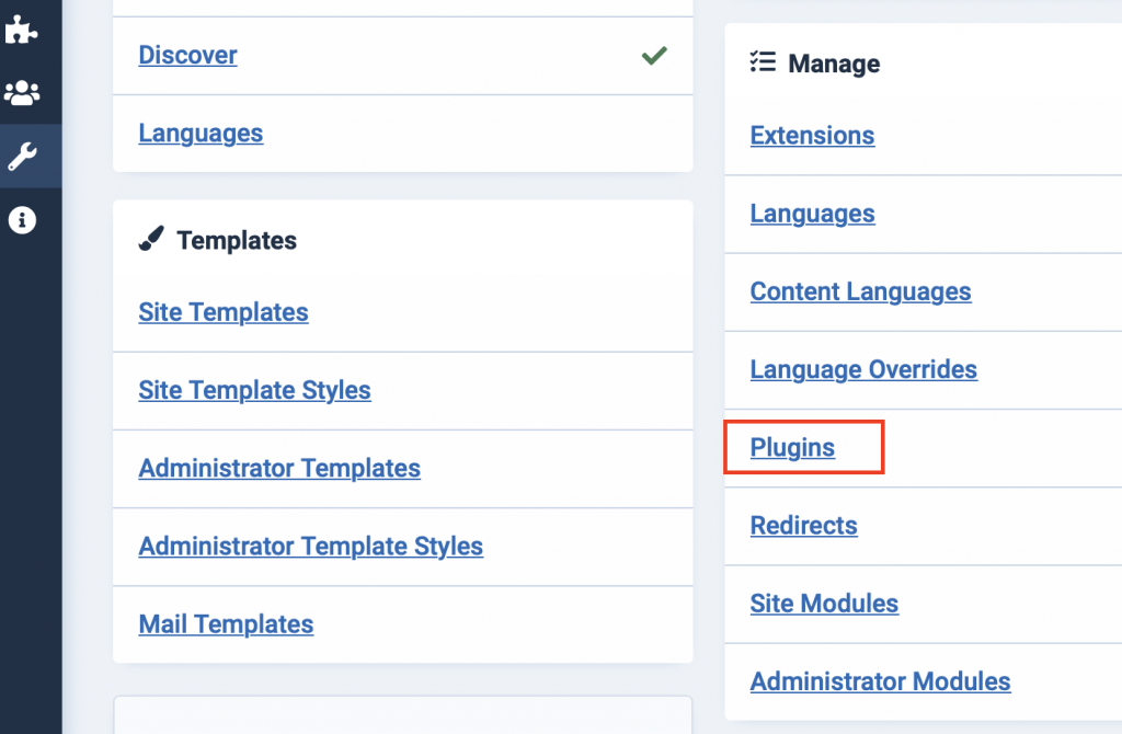 - Vai in Extensions > Plugins dal tuo pannello di amministrazione.