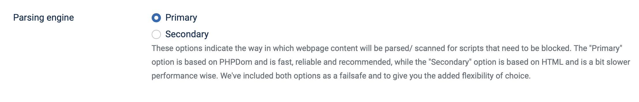 Essendo in PHP nativo, consigliamo la prima e più veloce opzione per il motore di parsing. Se si verificano dei problemi, ti invitiamo a provare con l’opzione alternativa.