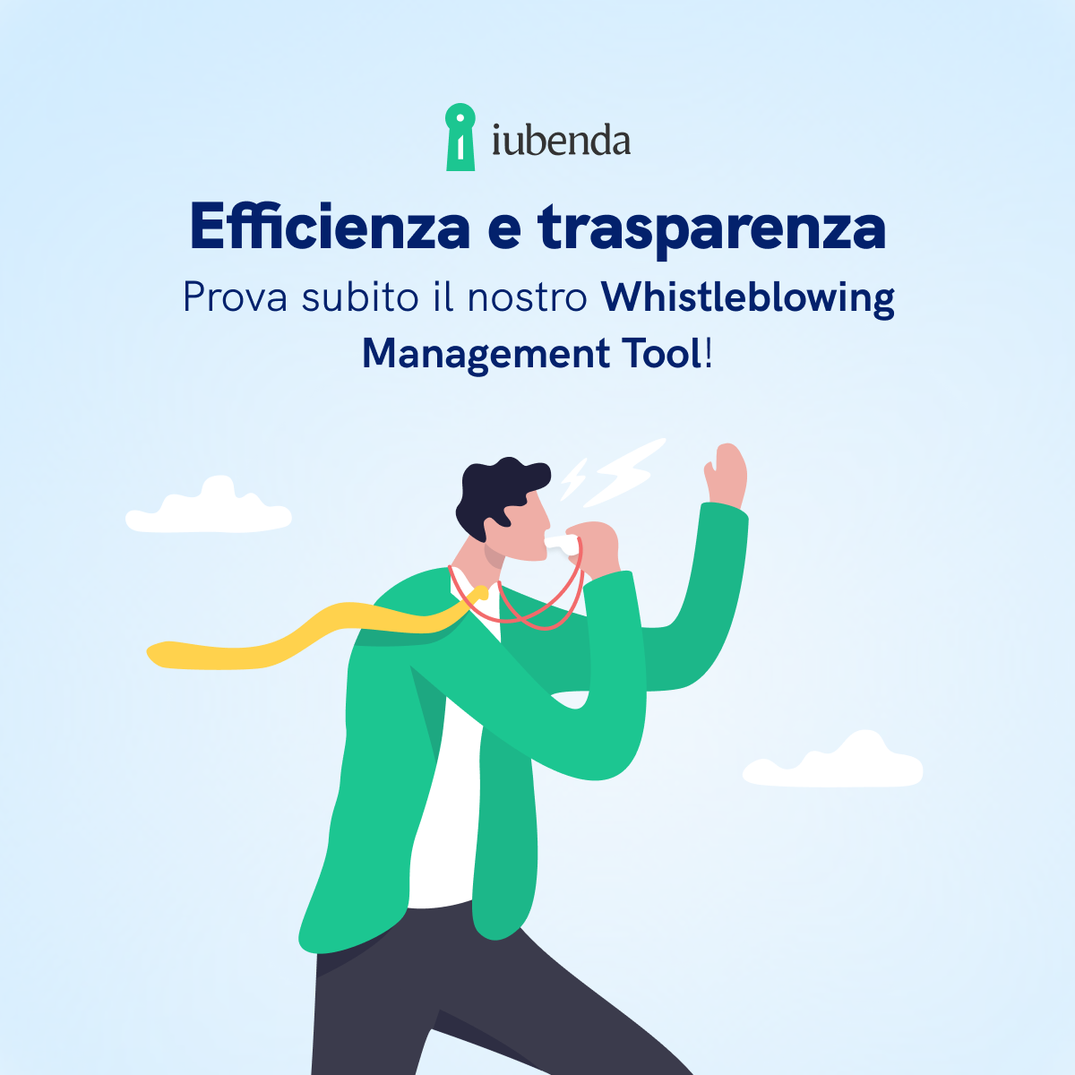 📢 Grandi notizie! iubenda ha lanciato uno strumento per aiutare le aziende ad adeguarsi alla direttiva UE sul Whistleblowing. Scopri di più su https://www.staging.iubenda.com/p/it/whistleblowing-management-toolUsa il mio link di referral [add your affiliate link here] per uno sconto del 10%