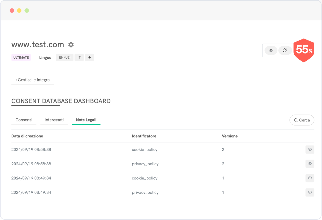 Utilizza report dettagliati organizzati in una dashboard intuitiva per ottimizzare le tue configurazioni e migliorare i tassi di consenso.
