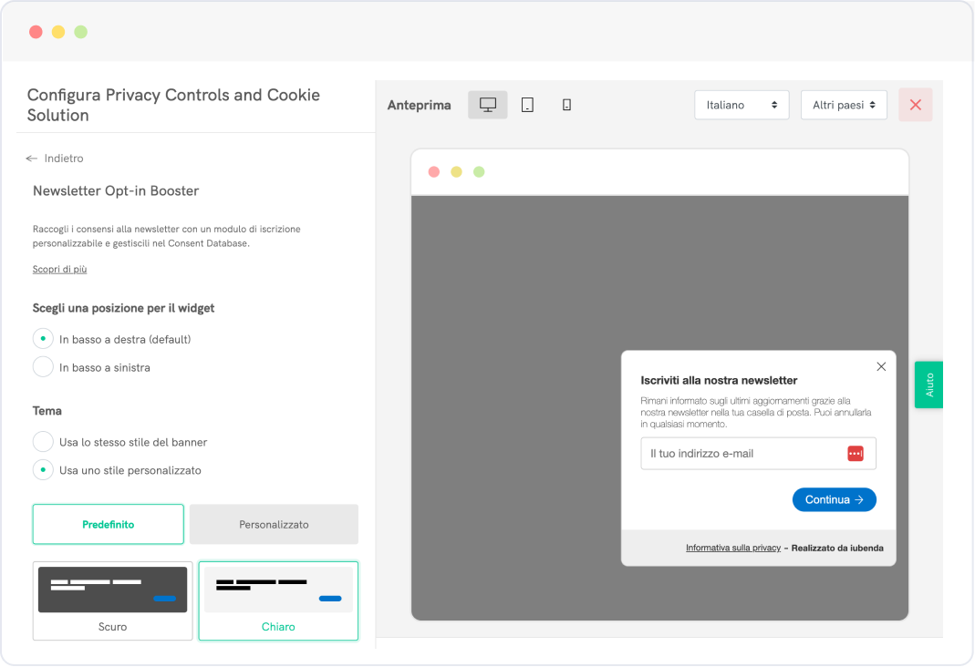 Offrire soluzioni ben progettate e personalizzabili è importante per noi. Configura le soluzioni iubenda per adattarle al tuo brand e farle davvero tue.