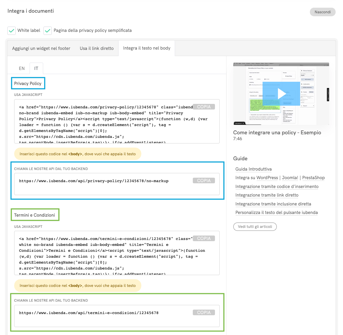 Ci sono due modi per integrare i documenti legali di iubenda nella tua app mobile:
