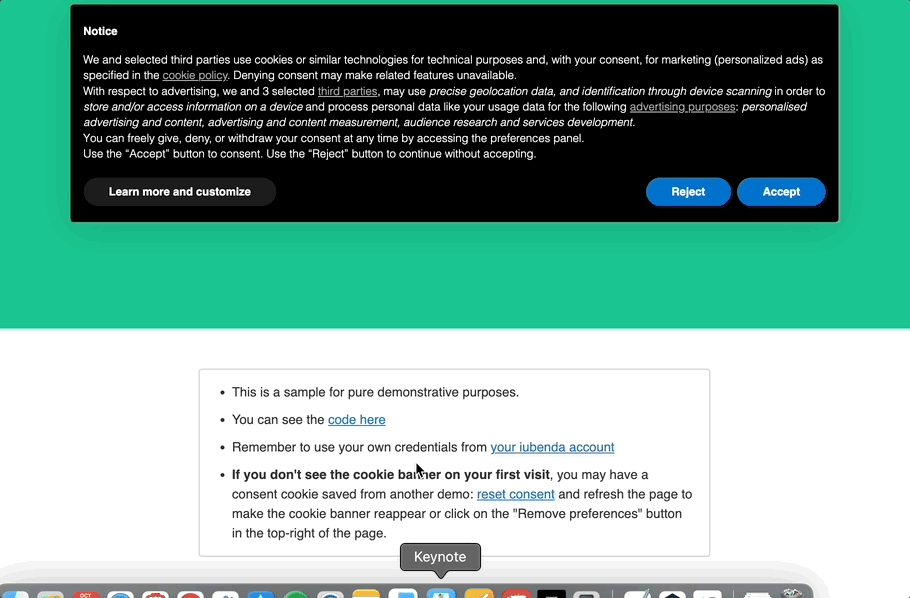 💡 Essendo una CMP certificata, iubenda ti consente di gestire le preferenze relative al consenso per la direttiva ePrivacy, il GDPR e leggi degli Stati Uniti come il CPRA, il VCDPA e altre ancora.